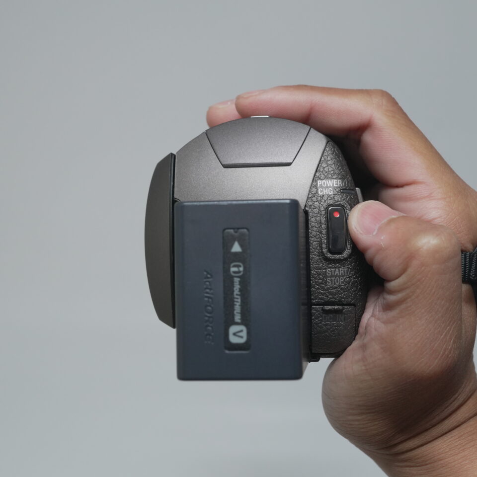 少し丸みがあり握りやすく録画ボタンも押しやすい位置にあります。